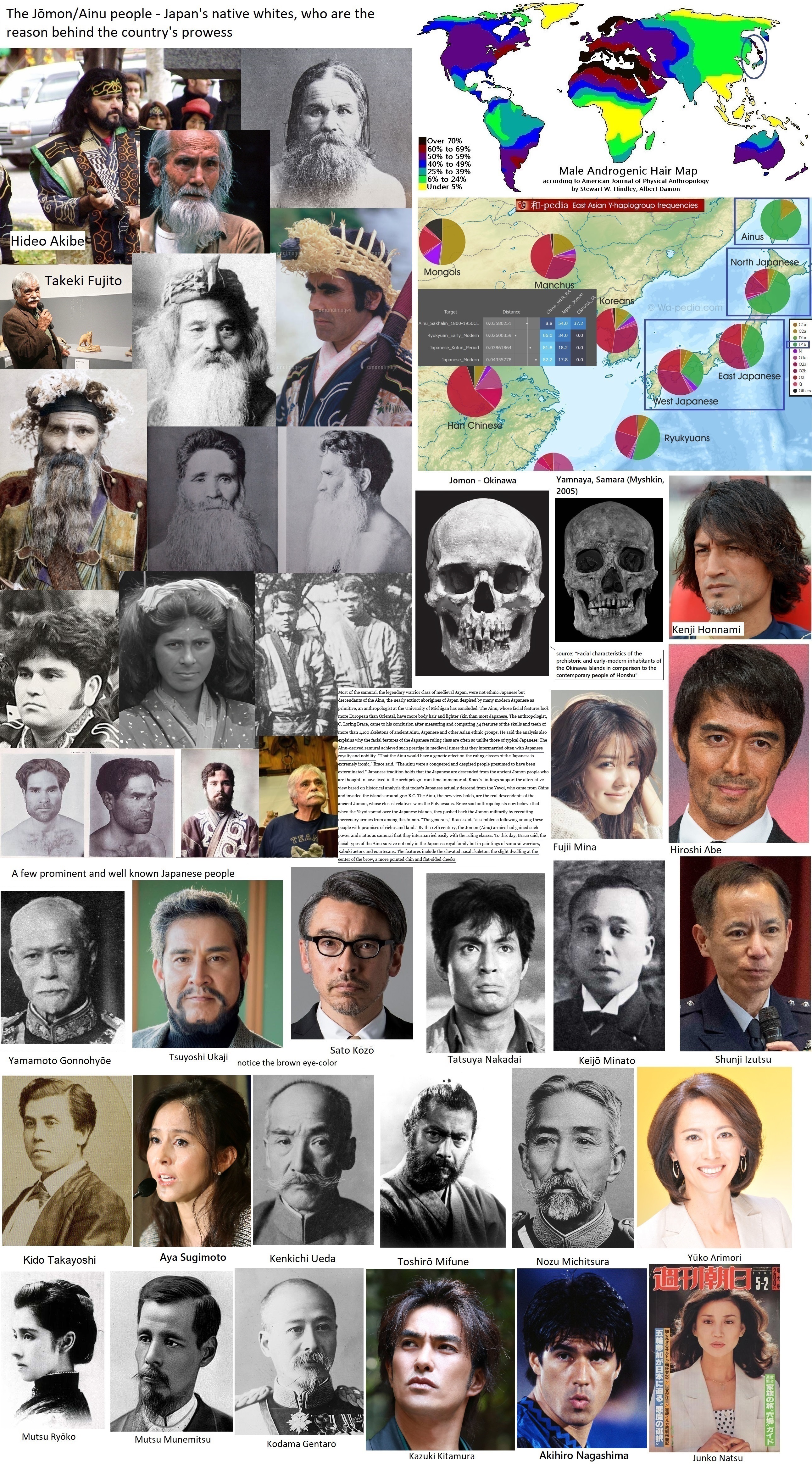 >>533889817Many of these people are Ainu, I believe. Indigenous Japanese people from Hokkaido and the Kuril Islands. They migrated from Siberia and remained isolated, which explains their European-like features.