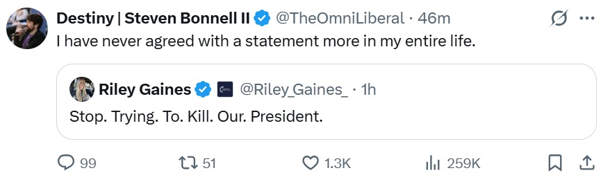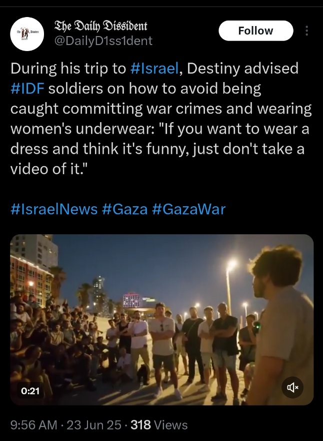 LEFTIST STREAMER DESTINY CALLS FOR THE ASSASSINATION OF PRESIDENT TRUMP