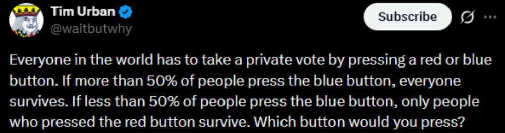 You could also argue,if everyone presses blue nobody dies.