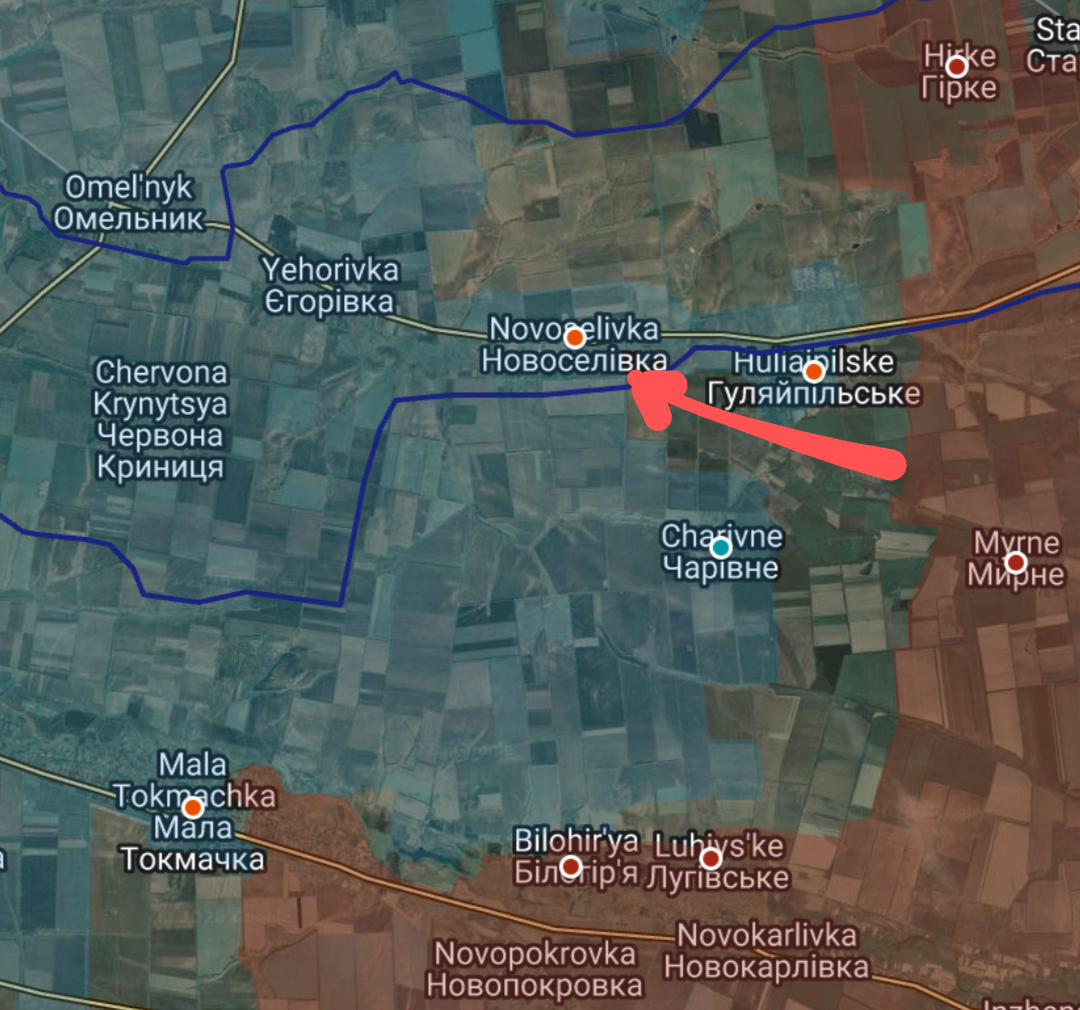 Russian infantry has been geolocated at Novoselivka. The general push is towards the town of Omelnyk, a main supply hub for Orikhiv and the whole south Zaporizhzhia sector.