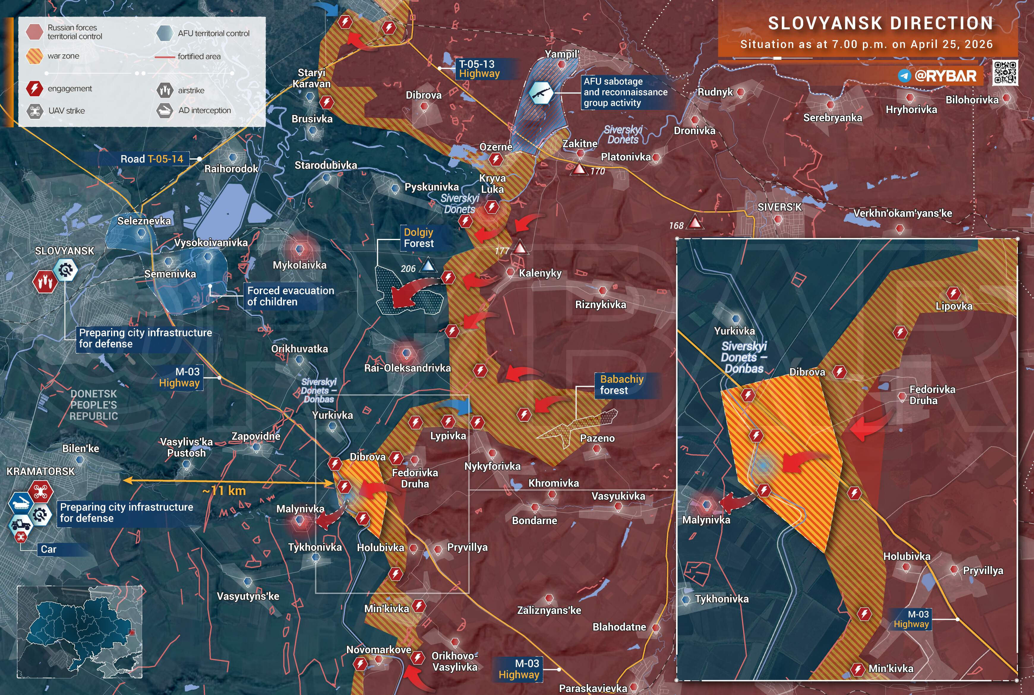 A significant advance has been made on the Siversky-Donets canal east of Kramotorsk. Russians have been geolocated as having breeched the canal and have now a presence on its western bank.The Russians have entered the town of Rai-Oleksandrivka and are also flanking it on its northern side.There's speculation that the Russians may focus more in this direction towards the south of Kramotorsk and bypass the town of Mykolaivka for the meantime.