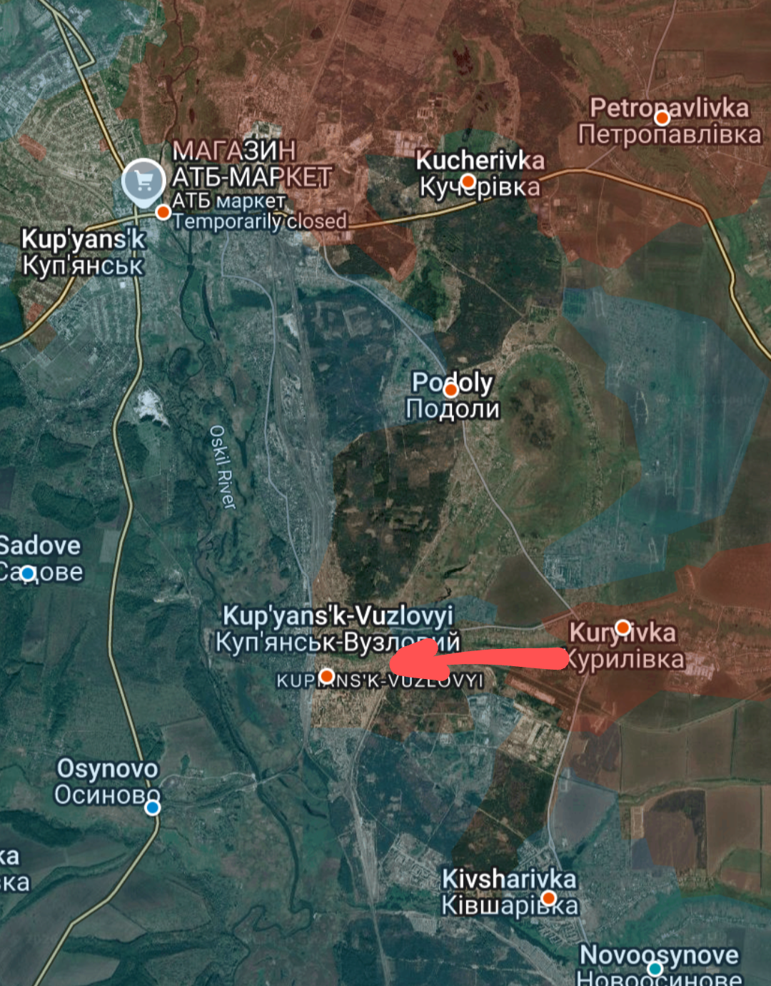 The Russians have advanced on Kupyansk-Vuzlovyi from the Kurylivka direction, threatening to split the pocket on the east side of the Oskol river in two.