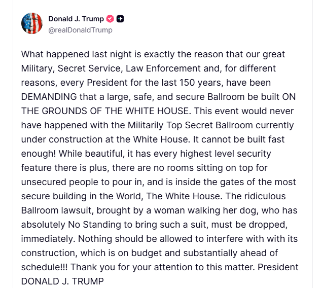 >Militarily Top Secret BallroomThis nigger really staged a falseflag to try and unblock the construction of his gay ass ballroom.https://truthsocial.com/@realDonaldTrump/posts/116471074928310119