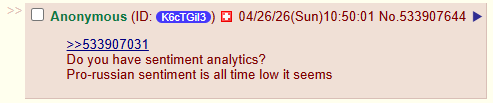 >>533907031Do you have sentiment analytics?Pro-russian sentiment is all time low it seems