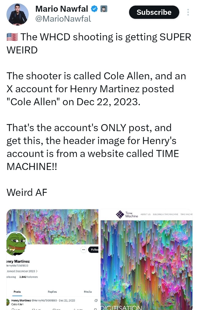 >Cole Tomas Allen – NASA Involvement (2014)Details:>Program: Summer Undergraduate Research Fellowship at NASA’s Jet Propulsion Laboratory (JPL) in Pasadena, California.>Year: 2014 (confirmed across multiple sources including his LinkedIn profile references).>What he worked on: AI models for planet mapping.>Context: At the time, he was a student at Caltech (California Institute of Technology), studying mechanical engineering. This was part of his undergraduate research experience.>Additional background on Cole:>Later earned a B.S. in Mechanical Engineering from Caltech.>Also has a Master’s in Computer Science.>Worked as a teacher (including “Teacher of the Month” at a tutoring center in 2024).>Indie game developer focused on physics-based games.>Lived in Torrance, California (near JPL).>This NASA internship is one of the more notable parts of his public background, especially given his later path as a teacher and game developer.>Henry Martinez – NASA Involvement (2014)>Affiliation: Lockheed Martin Space Systems Co. (Denver, Colorado)>Year: 2014>Document: Co-author on a NASA technical report / conference paper titled:“Testing Orion’s Fairing Separation System”>Publication Date: May 1, 2014 (listed on NASA’s Technical Reports Server – NTRS)>Context: This was related to NASA’s Orion spacecraft program (the crew vehicle designed for deep space missions, including potential Mars missions). The paper dealt with testing the fairing separation system (the protective nose cone that separates during launch).