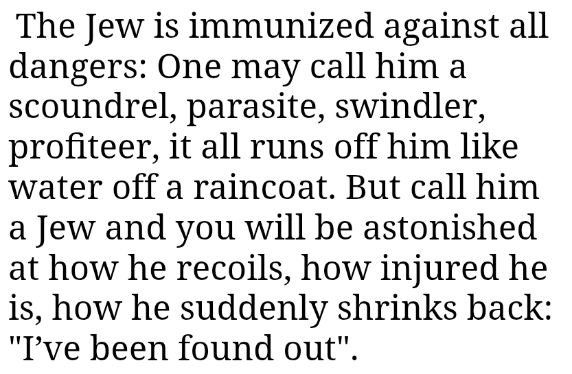>>533899011Call them jews. See how they recoil.Watch their faces change as they think"I've been found out".Post pictures of their ugly visages and hear them kvetch and screech "antisemite" at you.But ht ebest way to troll a jew is just to read them their own fairytales about the Hall Of Cost.The "masturbation machines" and the "Bear and Eagle cage" is guaranteed to set of seismic kvetching noises in most jews.