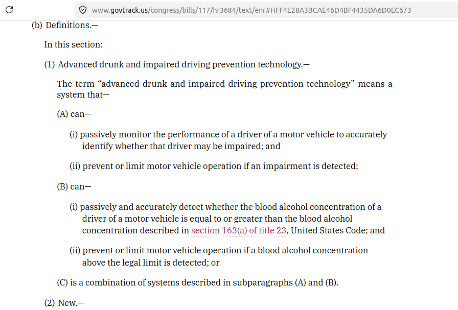 Also correct, but near as I can tell that law still has created the mandate for the Secretary of Transportation to figure out how to make this happen and has given him an enormous blank check to create whatever rules he wants regarding this.
