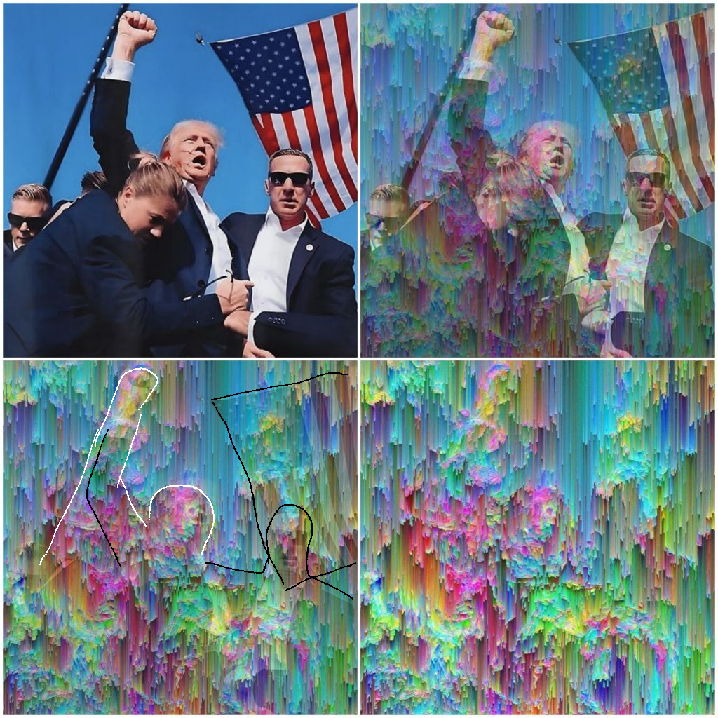 >>533910373If that image was really based on the picture of the attempt on Trump at Butler, that means the account was created (or modified) after it happened and the dates are falsified.I see the similarities but I doubt it was really based on it desu. Seems like it's the kind of image you could sort of see arbitrary images morph into it. Really you just need to peaks/valleys of the paint trails roughly matching the outline of another image. It's a wide image and the odds that you can find some overlap isn't that low.