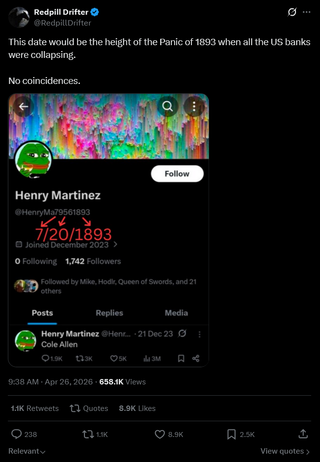 https://boards.4chan.org/pol/thread/533895102#topOriginal thread. either x is corrupt or time traveller or rooks bassist