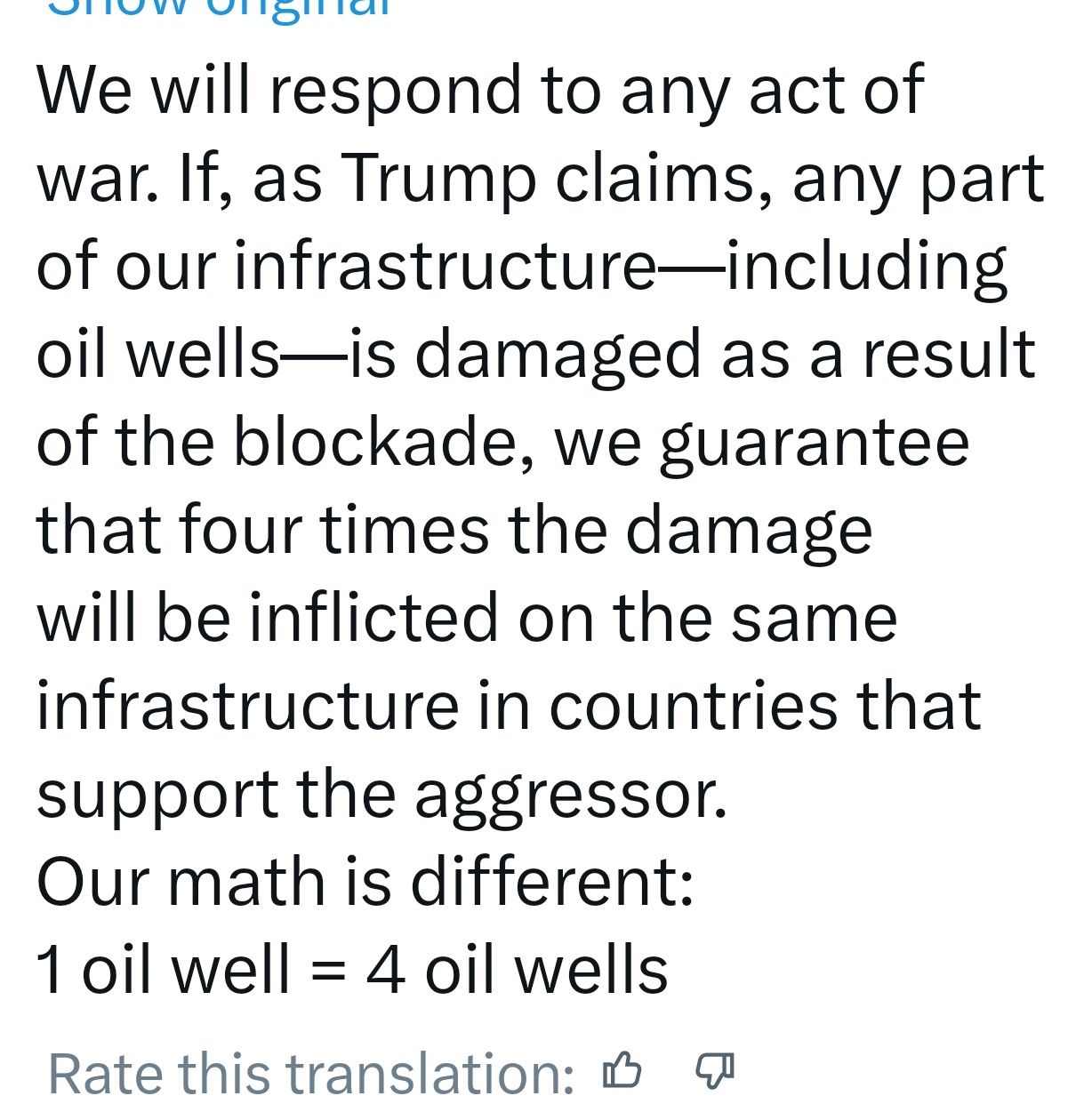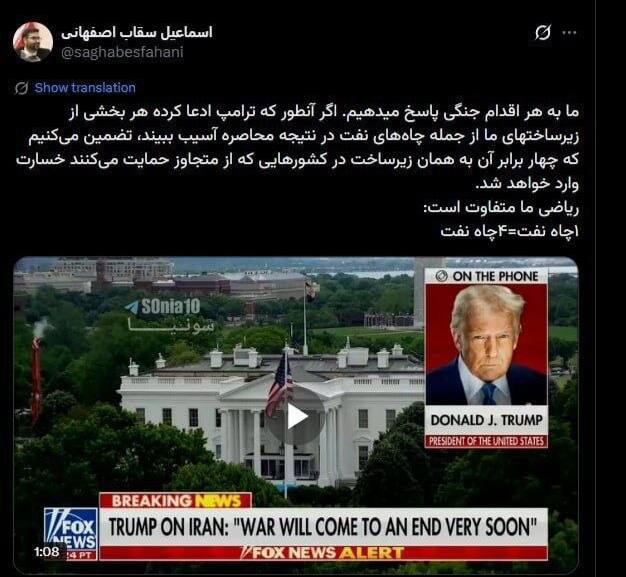 >Iranian official: If our oil wells are damaged due to the blockade, the oil wells of countries supporting the US will be damaged.