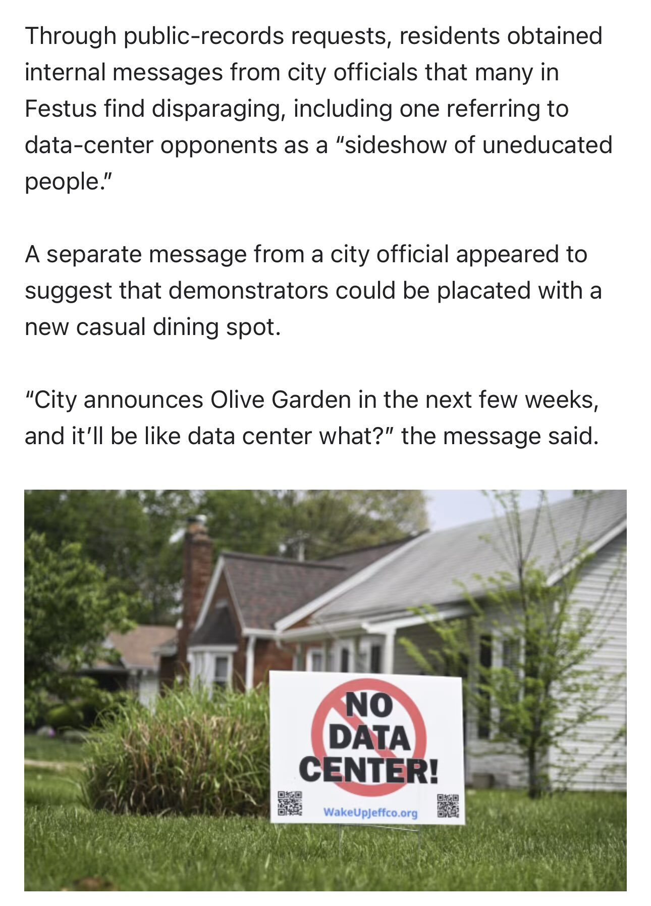 Festus, Missouri. I'm from the St. Louis area. If these dumb hoosiers can stop a data center and recall their mayor, you can too.