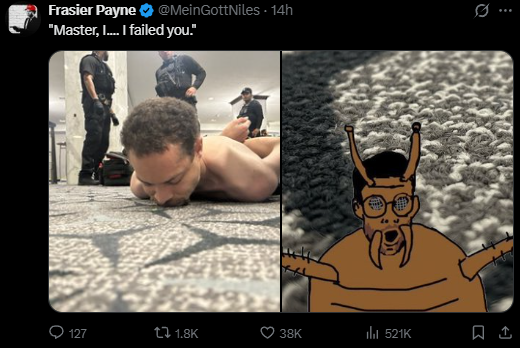 >>533922053>Why was he naked?>>533922053Getting arrested is an intentional humiliation ritual. Nudity is just one part of the humiliation. Wait until they make him bend over and cough.