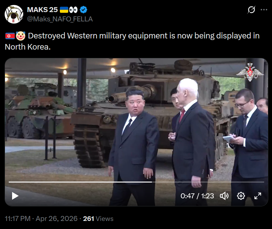 >Destroyed Western military equipment is now being displayed in North Korea.damn terror friends