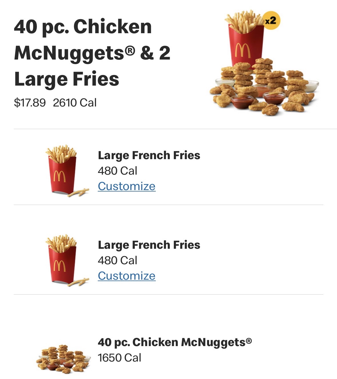 >>533937311>40 chicken nuggetsYou're literally eating processed waste filled with chemicals to make it taste edible