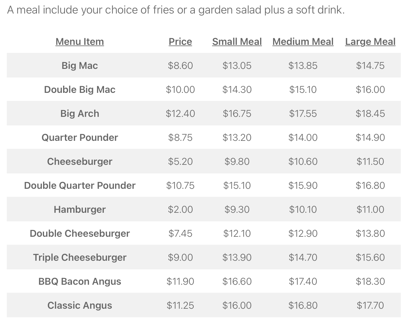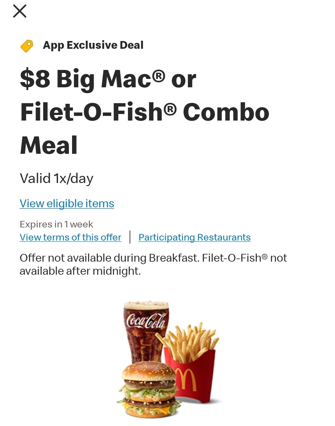 You can get a medium 'mac meal for $8 on the app.