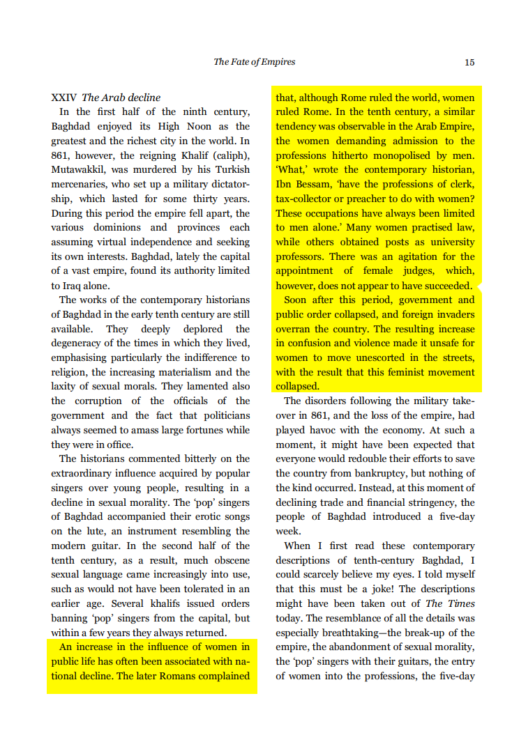 >>533943074How historically has giving women what they want lead to societal decay/destruction? can you give me a few examples? Whenever I say this, libtards tell me to give them an example and I can't.