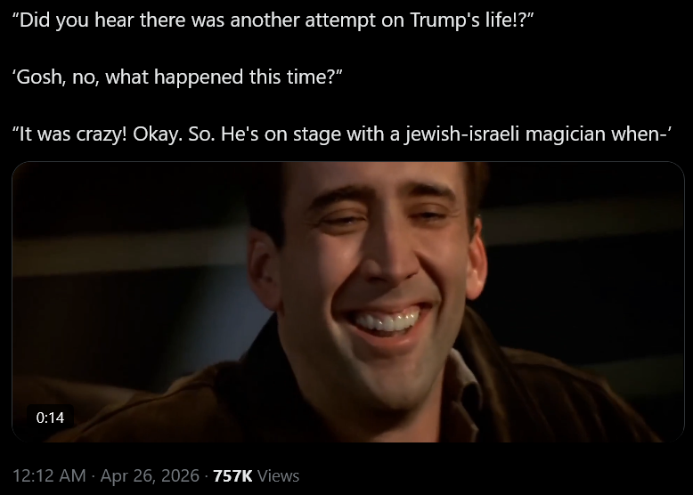 >>533947922>MillerCovers his pregant wife with his own body and then cops a feel as he holds her close and escorts her out the building>HegsethImmediately jumps to his feet, covers his wife with his own body, and puts his head on a swivel looking for who he has to kill>VanceJumps up and tries to run towards the sound of gunfire while the SS desperately try to drag him out of the room>Trump>Wryly smiles, looks to make sure his wife is okay, insists everyone else escape before him, refuses SS trying drag him out, and calmly walks out on his own two feet>Kashapp PaypalScreams like a woman, bolts out of the room abandoning his girlfriend. Pisses his pants. Crying on the phone.They not like us.