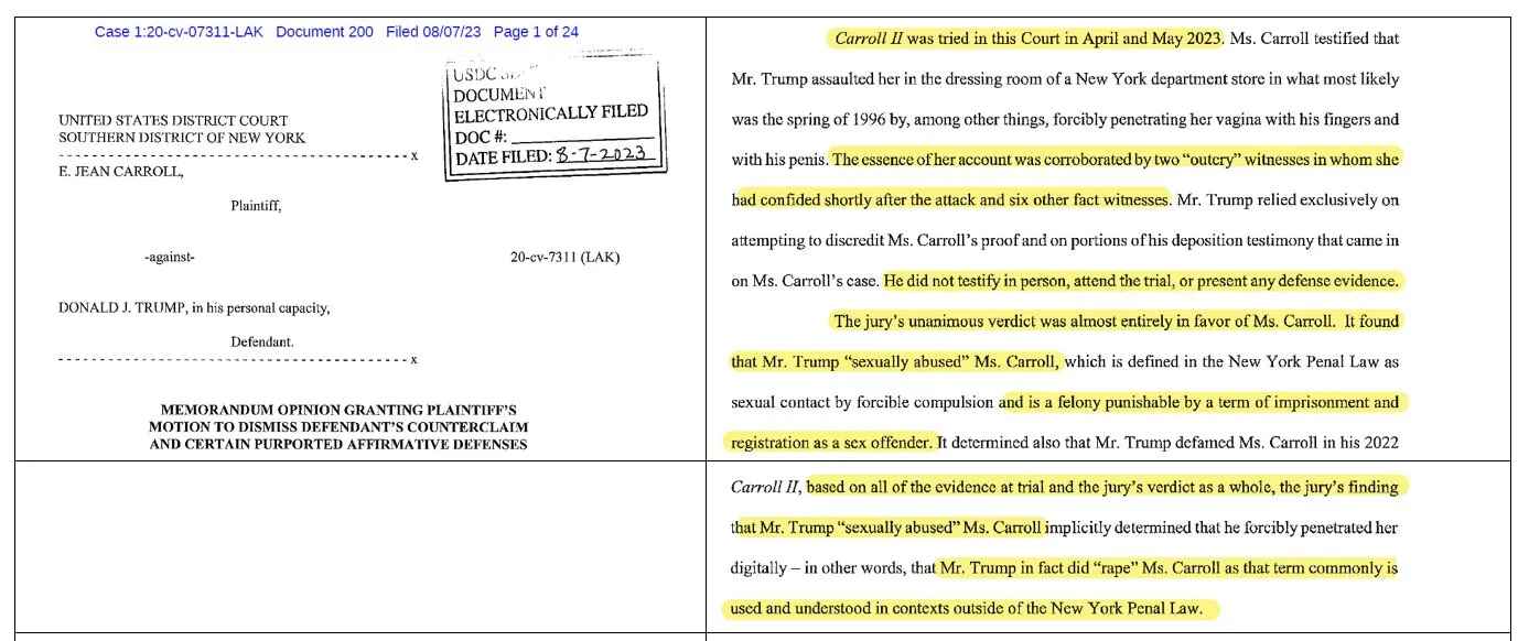 >>533943828"I'm not a rapist. I didn't rape anybody."E. Jean Carroll would beg to differ.