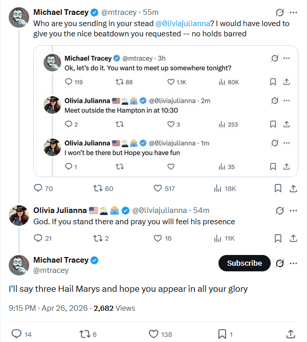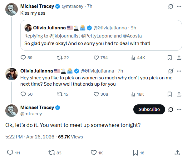 Michael Tracey is now picking fights with random fat commie broads. Bro needs to log off for a while and drink a beer or three and chill out.