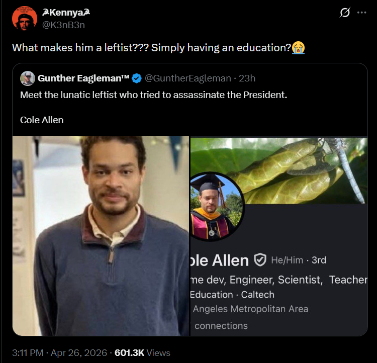>>533944147What's scarier is that when they reveal faces it was teachers, nurses, doctors.Pretty much anyone indoctrinated at our univerisities.Just like the brilliant caltech graduate that naruto rushed the WHCD because oraage man bad.