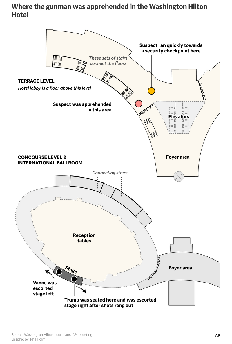 Why was a shirtless man carrying multiple firearms allowed to get so close to the president and vice president?Why did the president just sit their blank faced when he was informed of the situation?Why did the SS grab Vance before Trump?