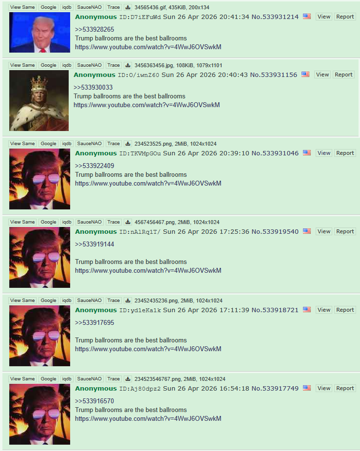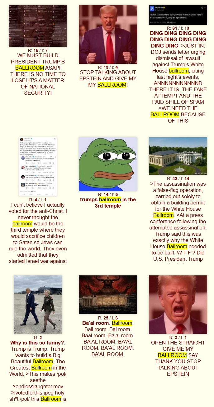 All the "TRUMP IS A PEDO!" spam instantly disappeared, as all jeet resources were directed towards the "BALLROOM!" spam. Just like their previous spam campaigns all disappeared:
