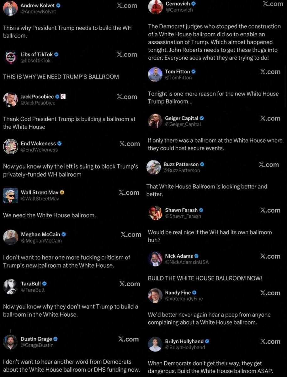 Whoa, a couple dozen people who love Trump mentioned a ballroom right after Trump mentioned a... ballroom... during a highly viewed press conference. Big scandal right there trannybro.