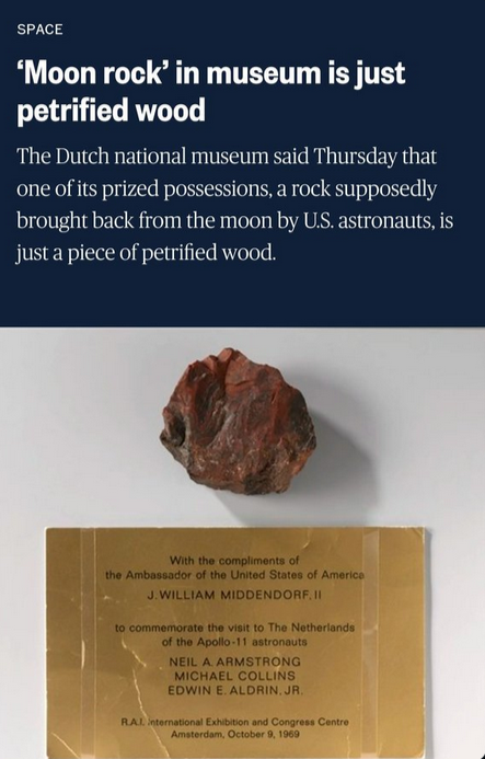 >>533974026Fifth, the fuel claim (“less than 1% required”) is simply incorrect and not based on real physics or mission profiles.Finally, Moon rocks are not solely “verified by NASA.” They’ve been studied worldwide for decades and have unique isotopic and geological properties distinct from Earth rocks. The Dutch “fake rock” was a mislabeled gift, not a scientific sample. Missing goodwill samples given to countries reflect poor tracking by recipients, not evidence of fraud.In short: nothing here demonstrates a hoax—only misunderstandings of technology, archiving practices, and evidence that is still widely available and independently verifie