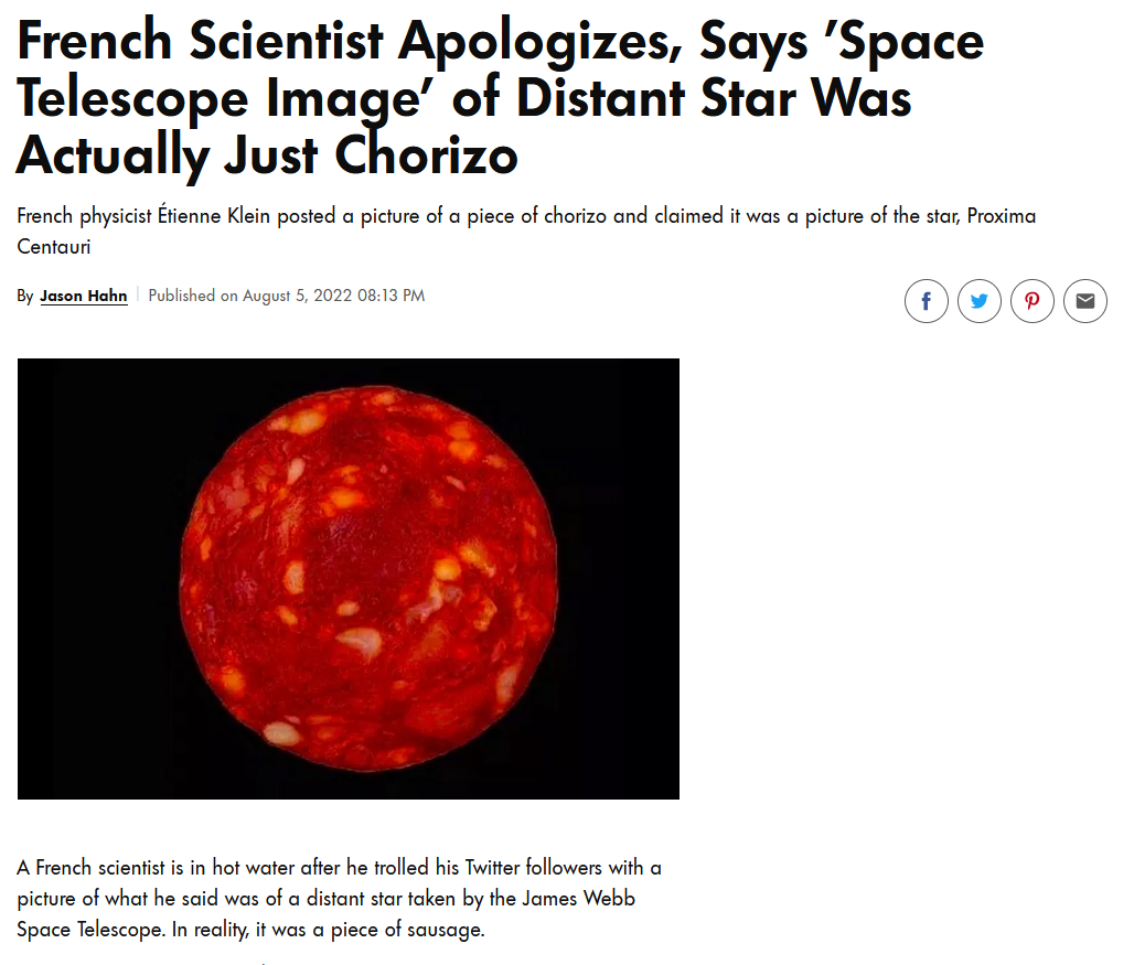 moon landing believers would still think this is a picture of proxima centauri if the scientist hadn't admitted it was a slice of chorizo