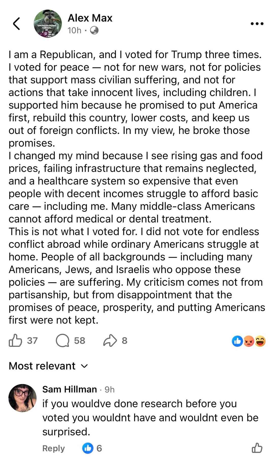 No its why I am voting MAGA Trump has done more to slow down immigration than any other president and when he is out of office I am voting for Vance. I want an isolationist president, who supports blue collar people, and isn't pro immigration. Vance checks all those boxes. If we are lucky he'll also be an actual fiscal conservative.