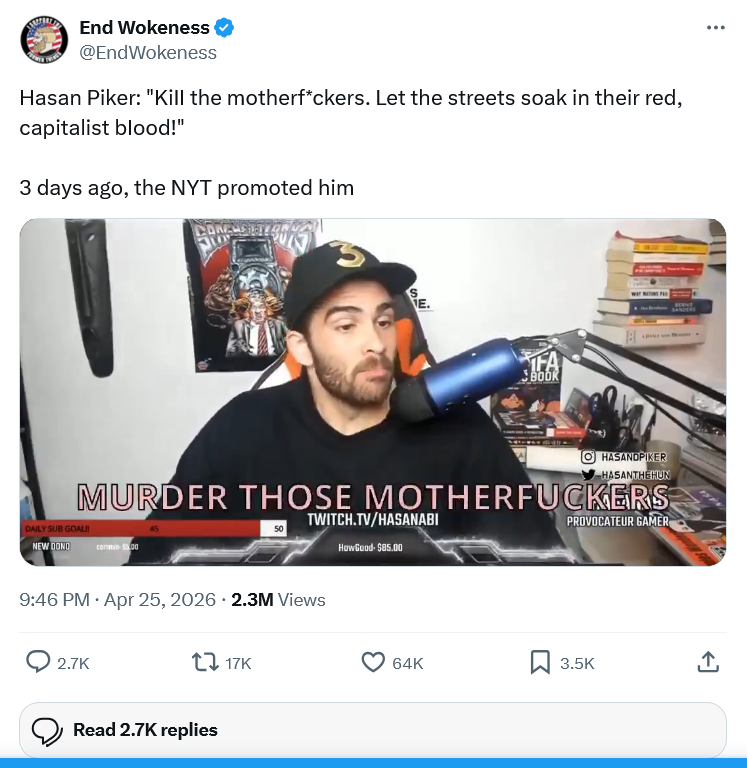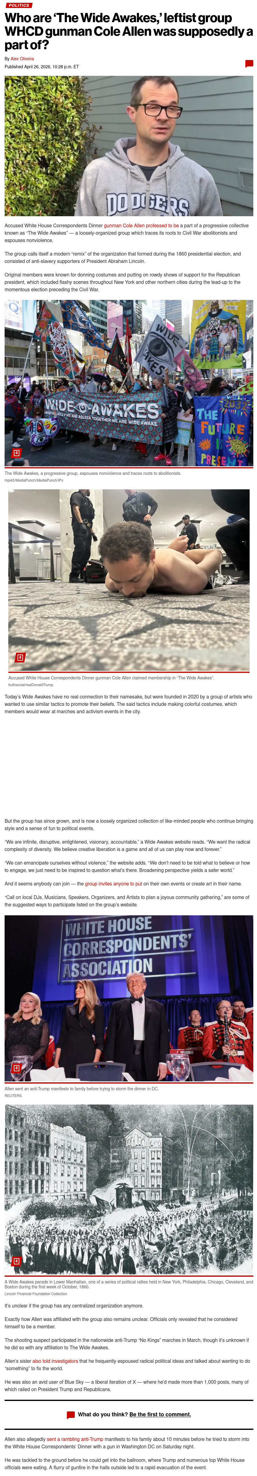 monday morning presents to you: The wide awakes.not even making it up.https://nypost.com/2026/04/26/us-news/who-are-the-wide-awakes-leftist-group-whcd-gunman-cole-allen-was-supposedly-a-part-of/