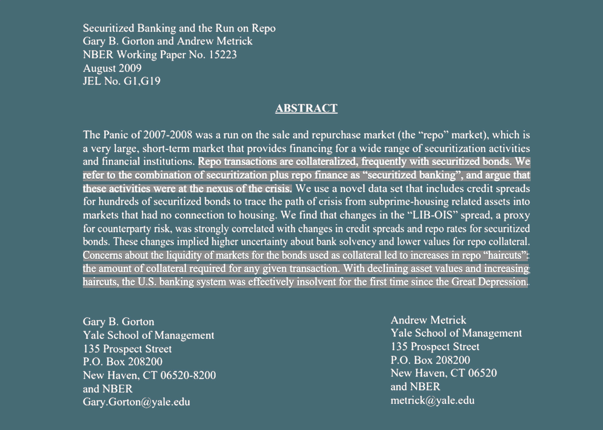 This is a paper from Yale University in 2009 that confirms that what Jeffrey Epstein was doing with the Repo Market and CDO's was the DIRECT CAUSE of the 2008 financial crisis.
