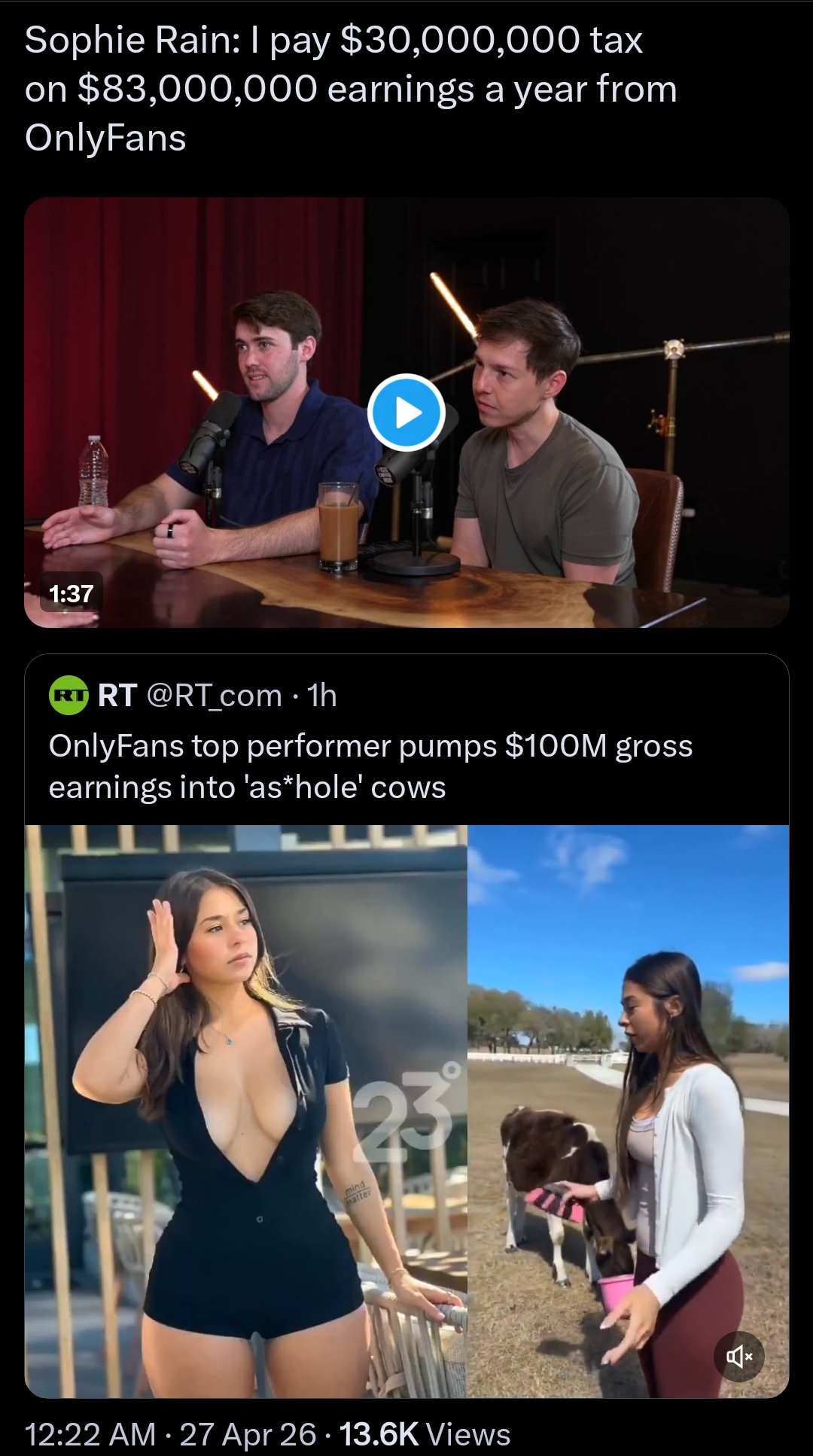 She probably makes 100k a year paid by OnlyFans to say she's making millions from OnlyFans.