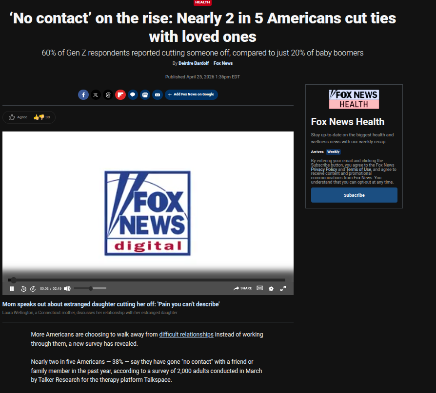 >>533988874Its children that are separating ties with parents because of political discourse. Its so stupid and ensures your lineage gets weaker It costs zero dollars to nod your head at your retard boomerparent proclaiming we need to send another billion dollars to israel. Keep in mind you have something to inherit rather its real estate stocks cars or a combination