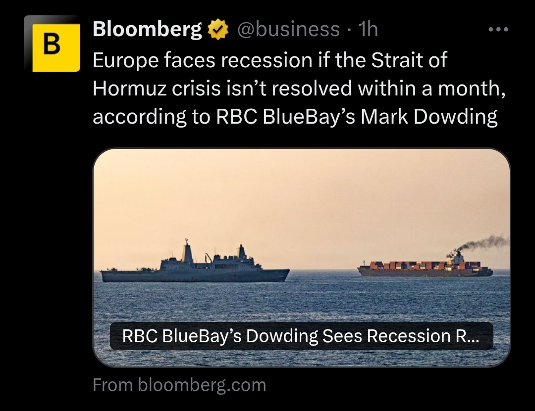 >>533977122Then it's not going to affect only Europe.So why does Anglokike media like Bloom(((berg))) always deflects every economic crisis onto Europe. Every time shit happens, uh oh, Europe is about to go into a recession.When Asia is the one that will choke without arab oil, not us. And Australia will run out of jet fuel
