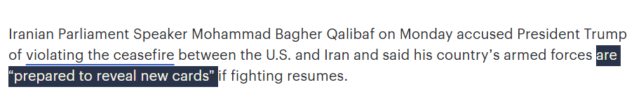 Previous: >>533968176Thread Theme: https://www.youtube.com/watch?v=t9aAleL4g2QDay: 20 of the 14-day Ceasefire™ with IranDay: 59 of the 1-day "Special Military Operation™ to decapitate Iran"Day: 11 of the 10-day Ceasefire™ with Lebanon▶RECENT:>Iran signs a goods transit agreement with Pakistan. A step in circumventing the USA blockade and furthering peace in the region.>Iran tells mediators it will not negotiate on its nuclear program or Strait of Hormuz until the war ends.>Lloyd's List: At least 26 Iranian shadow fleet vessels bypass US blockade.>Iranian official: If our oil wells are damaged due to the blockade, the oil wells of countries supporting the US will be damaged.>Israel’s Defense Minister Israel Katz: “Israel is prepared to resume the war against Iran — We are awaiting a green light from the United States — first and foremost to complete the elimination of the Khamenei family and to push Iran back into a dark age. This time, the strike will be different and far more lethal, delivering devastating blows at the most sensitive points — ones that will shake and undermine its very foundations".>NBC article on the true extent of damage done to US bases in the Middle East: archive.md/zHIWI>Iran is prepared for the 'largest missile launch in history' at the occupied territories and some Arab countries allied with the US as soon as it sees signs of any strike.>Iran has prepared POW camps in the event of a ground invasion.>POTUS "canceled" negotiations with Iran, "We have all the cards!...If they want to talk, all they have to do is call!!!">POTUS announced he ordered the U.S. Navy to "shoot and kill any boat... that is putting mines in the" Strait of Hormuz.>The UK Maritime Trade Operations Center reported a security incident 83 miles southeast off Somalia.>Somalia announces a ban on all Israeli ships passing Bab Al-Mandab.▶WARNING:>Do not trust any "happenings" or posts without link/proof>Uкraine / Яussia discussions belong in uнg or cнug