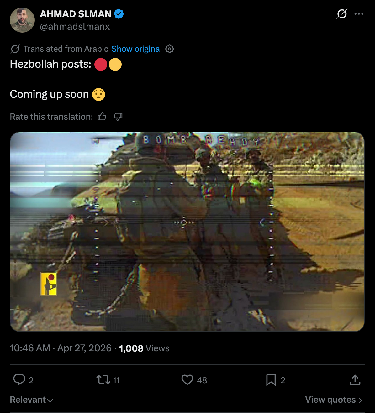 Israeli media : Disappointment in the security establishment after the discussion held earlier today: "Trump's appetite for an agreement with Iran is harming our deterrence in the north, this cannot continue"###Meanwhile, Israel has been attacking the exact same villages for three days: Kharbat Salem, Zotar, Kafra, Sidqin, and Ali al-Tahar. 95% of the strikes over the past three days have focused solely on these villages, a reality that is hard to accept.Jews mad at Trumpcuck