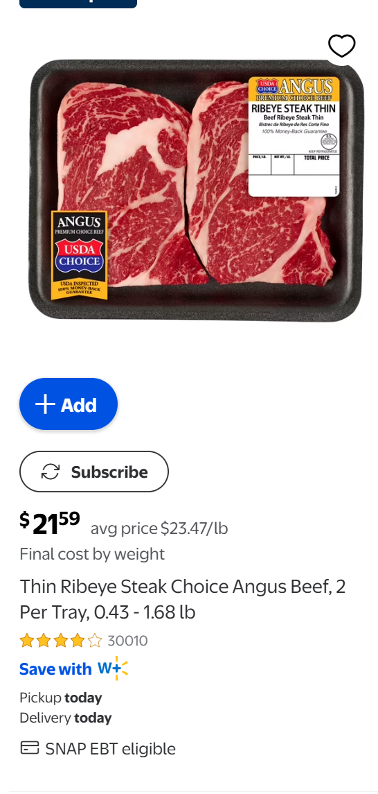 >>533983349Ok, deboonk this one >>533981746 a couple of barely over 7 oz paper ribeyes at over $23 a lb, from a midwest beef-producing State.