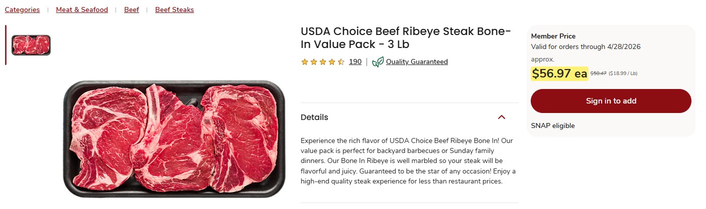 >>533976496It's a three pack of Prime ribeyes, they have always been expensive.The key is to stock up on meat when it goes on sale. If no one buys that ribeye, they will eventually discount it to $15-20 per pack just to sell it before it gets too old. Don't be the dupe who buys it at full price, wait until it's on sale then stock up and throw the extras in your freezer.