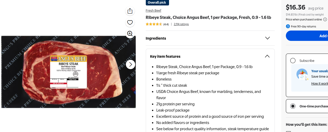 >>533983349Ok, deboonk this one >>533981746 a couple of barely over 7 oz paper ribeyes at over $23 a lb, from a midwest beef-producing State.