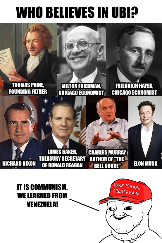 Welfare exists and the people you think will abuse their gibs already get gibsUBI would simply help those who work more, especially since you don't lose it if you make "too much"It rewards good behavior, not bad behavior like welfare where many people make "just enough" to get their gibs and play the system.Current beaucratic welfare systems, tax-wise, are more expensive than UBI ever would've been to boot.In other words, you're paying and working more for people you hate and refuse to free yourself from wage-slavery or whatever job/career you also hate because of your tunnel-vision and backwards view on these matters.You say you hate (((them))) but continue to make (((them))) and others you hate richer. I truly hope this is out of ignorance, but sometimes I wonder.Crabs in a bucket, a bucket of -your- own making.