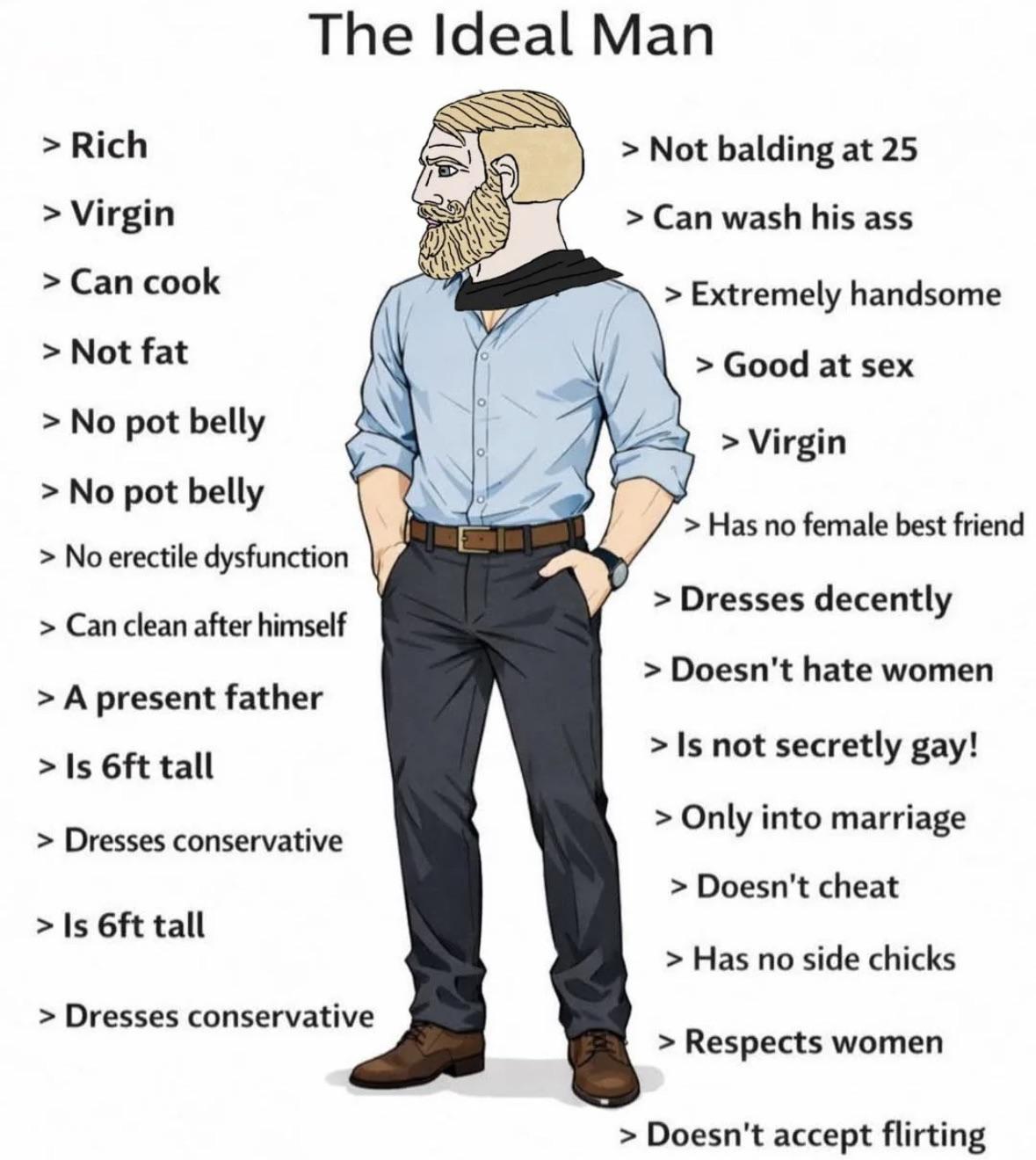>>533991776Welcome to women. Introverted and also extroverted. Loves going out and staying in. Wants a big mean man who "keeps them on their toes", dashingly handsome and fantastic with the ladies, but "treats me like a princess, gentle and only has eyes for me". etc. etc...