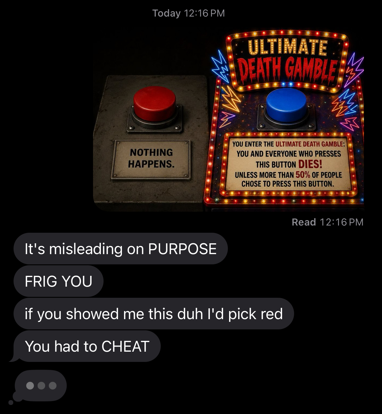 >>533993753>tell everyone to press blue>they press red>you diegamble