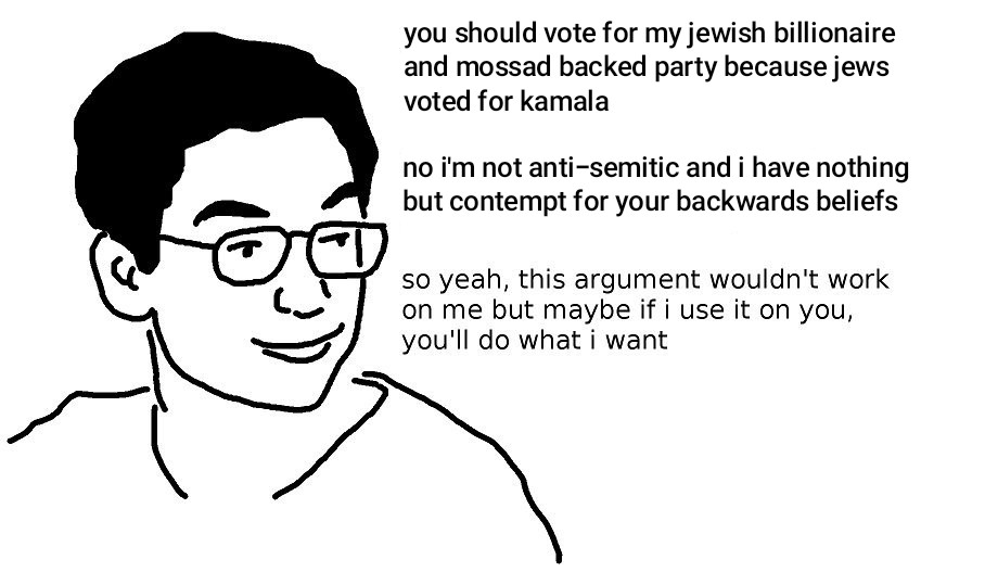 >>534012130>faggot who isn't even anti-semitic is doing the shapeshifting thing againLevin, Loomer, Kushner, Miller, and Witkoff, the jews behind every decision your president makes don't become not jewish because of voting statistics, is this supposed to be actual logic?
