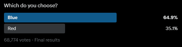 it was an open poll that got to nearly 50/50 despite being on twitter. and once it passed the threshold, everyone could clearly see and then voted blue when there was no risk