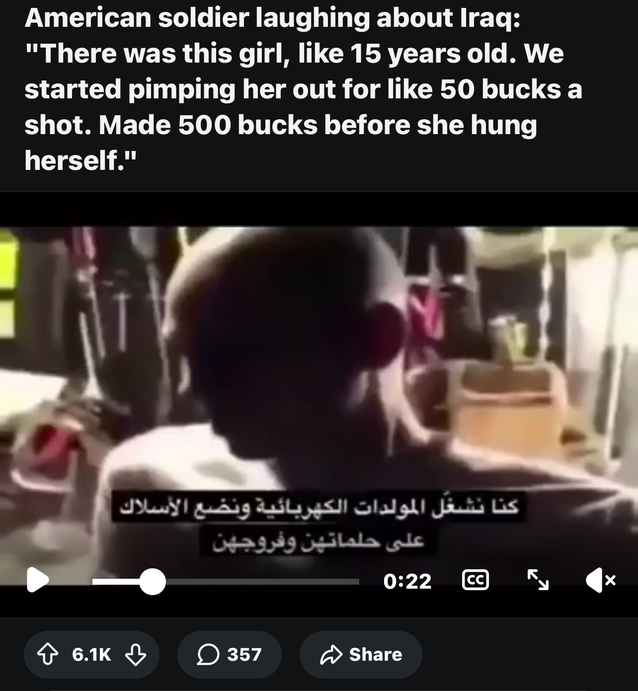 >Americans launch a war of aggression and put a bunch of deranged child rapists in charge and act as enforcers and protectors of deranged rapists. >Child rapists rape child to death.>Story gets back to the heroes >Shortly thereafter heroes assault the rapist stronghold and kill them all.wtf this is like a hollywood movie but the audience would complain the bad guys (Americans) are too evil to be believable!!!