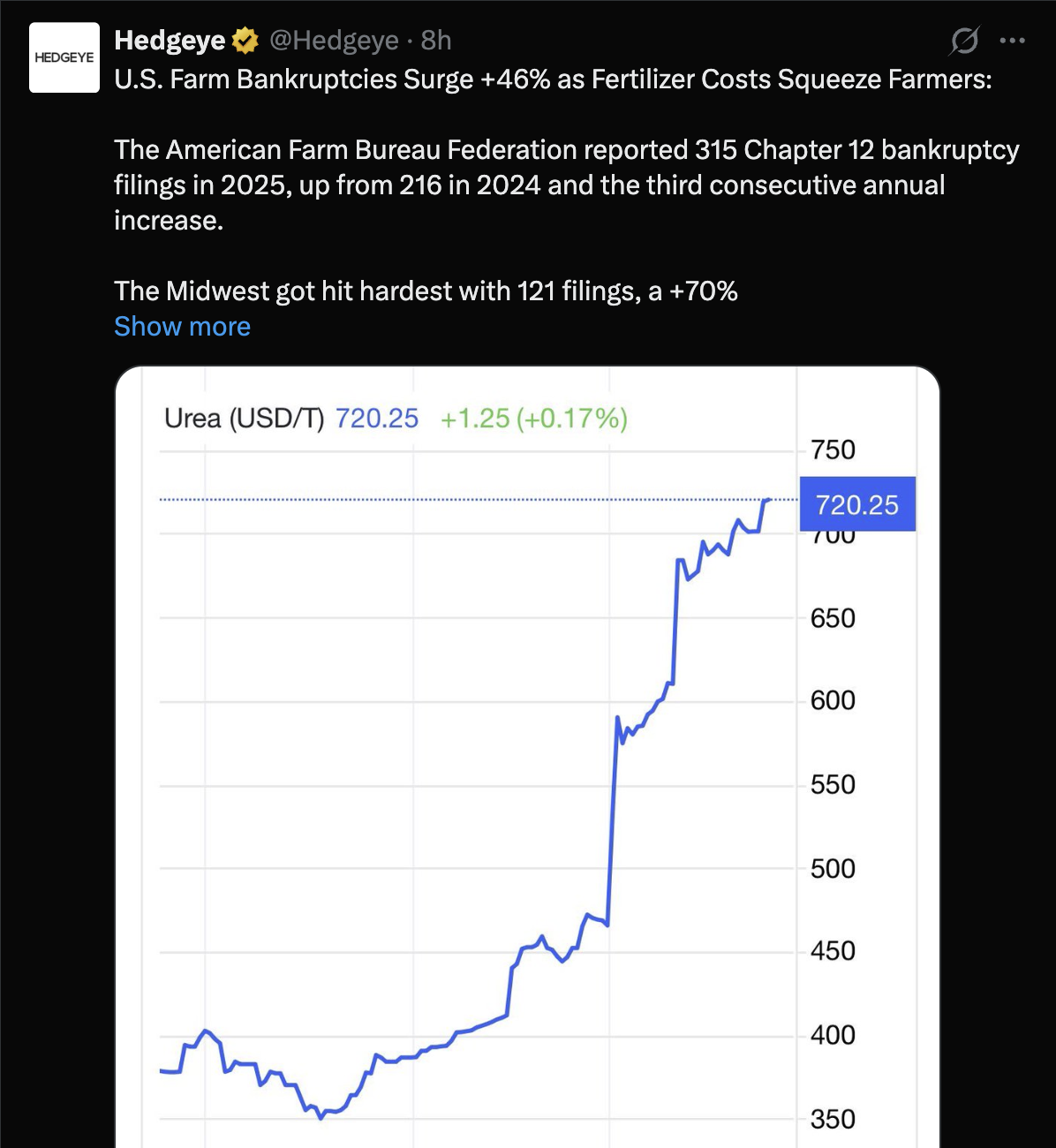 >it’s the dang farm!Absolute cope. Most food comes from China retards. No one can afford fucking rent. That’s why they are bankrupt.