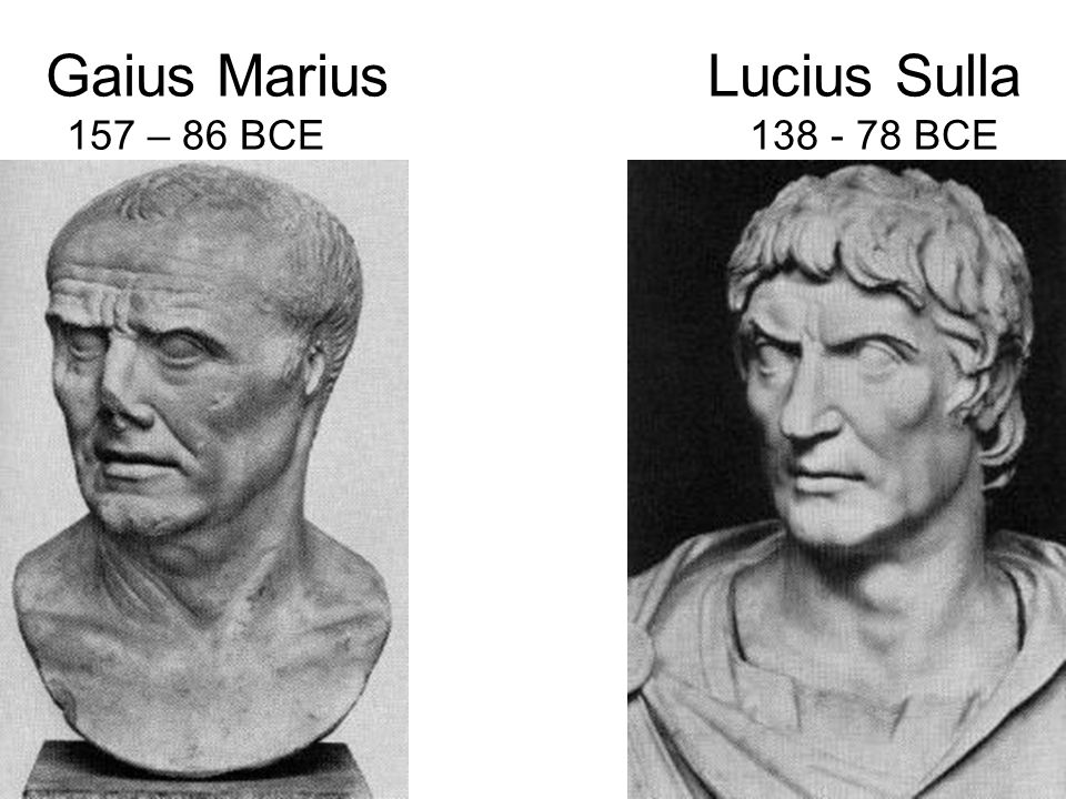 >>534002108Marius reformed the military. He was julius Caesars uncle.Sulla was a brutal dictator who started, in rome, the practice of murding political opponents in mass.The two are each in their own way responsible for the rise of julius Caesar. Marius' reforms of the military allowed the formation of armies loyal to the general, not rome. Sulla spared caesars life and showed him the folly of abdicating a dictatorship.
