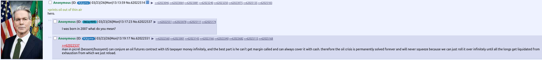 >>534008453It's feasible. American and British sailors would have been killed, but it would have been a military success. The success is keeping markets stable and Iranian missiles targeted onto disposables like US Navy ships and sailors, not oil refineries and tankers. Markets would have priced it in and gas would have stayed under $4.50. Most Americans would have swallowed it for Israel, trading their kids for cheap gas.We are way past that point and a draft is no longer doable even if Trump tried right now. It won't be in 3-4 months as prices rise and the heat really comes on in the summer, which exhausts American supplies/patience more due to AC.