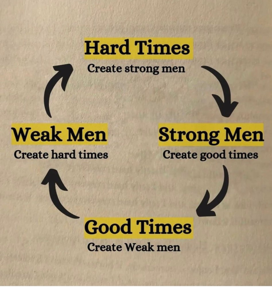>>534002154Their parents were the strong men, which created good times for those weak faggots. And we are in the hard times about to be MUCH harder to a point we cannot imagine.